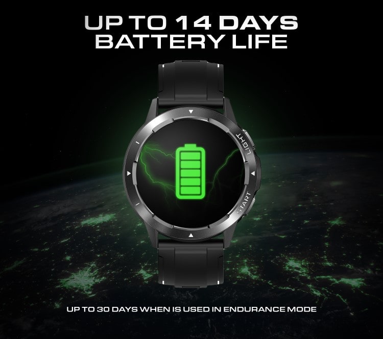 Dependiendo del uso que le des, puede durar hasta 30 días por ciclo de carga (modo de resistencia). En promedio, puedes conseguir alrededor de 7 días por ciclo de carga. El modo de uso completo tiene el consumo más agresivo y la duración de la batería es corta. Sin embargo, se puede recargar en alrededor de 1-2 horas, del 0% al 100%.