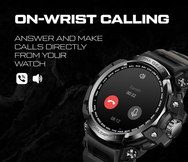 ¡Sí, al 100 %! ¡Puedes responder el teléfono o hacer una llamada y hablar a través de tu Delta PRO! ¡Mantente conectado y al tanto de tus notificaciones con facilidad! Nunca perderás una llamada importante, ya que el reloj muestra las llamadas entrantes y te permite rechazarlas o responderlas en tu teléfono. Simplemente permite las notificaciones en tu teléfono y mantente al día con tus mensajes y notificaciones de redes sociales desplazándote y leyéndolas directamente en tu reloj. Tendrás acceso a todas las aplicaciones principales como Facebook, Instagram, WhatsApp y más.