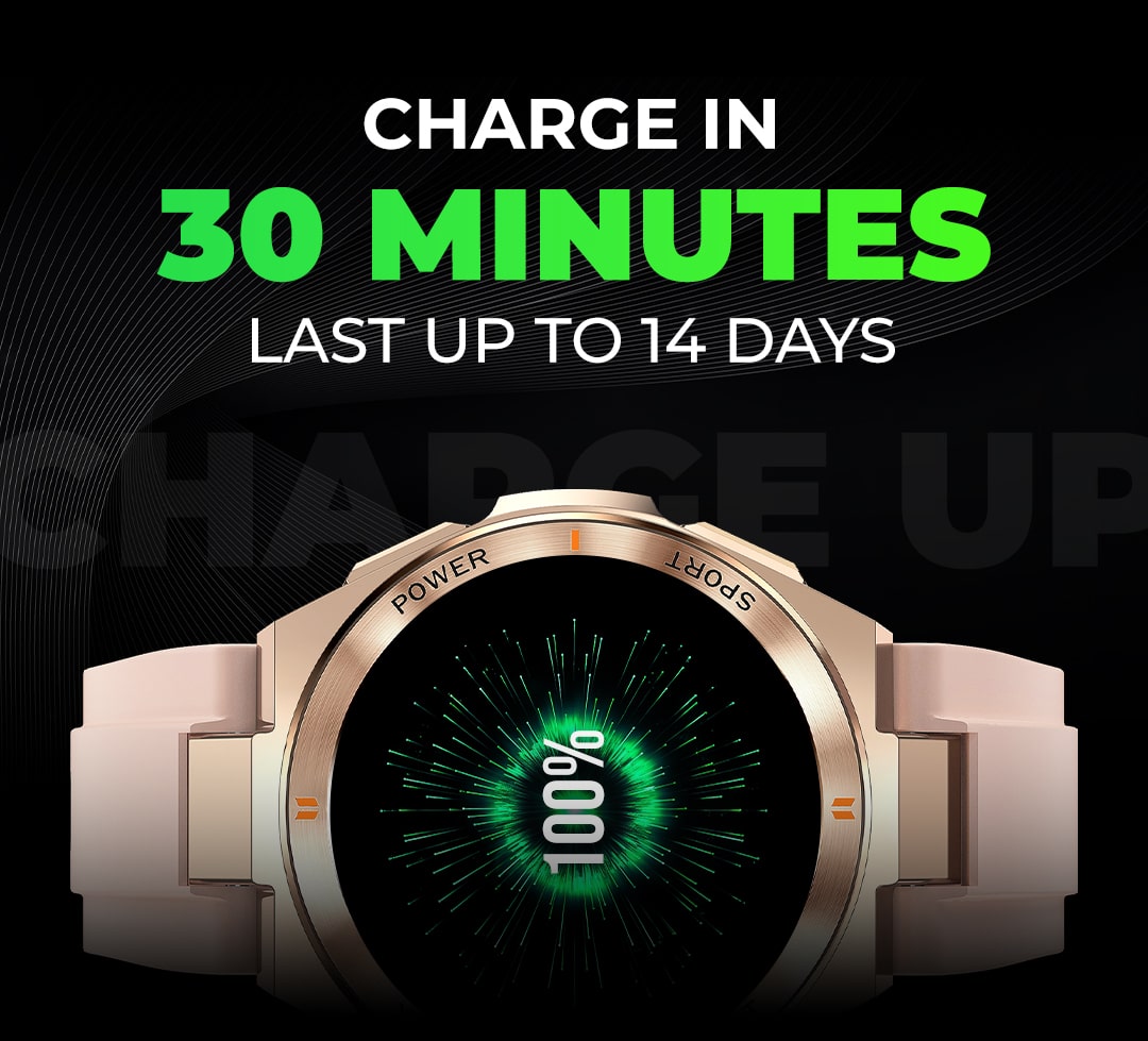 It can last up to 14 days per charging cycle depending on how you use it. On average, it lasts 10 days in full usage mode. It can reach 100% charge in about 60 minutes. However, to make sure it reaches full charge, we suggest letting it charge for 1 - 2 hours.